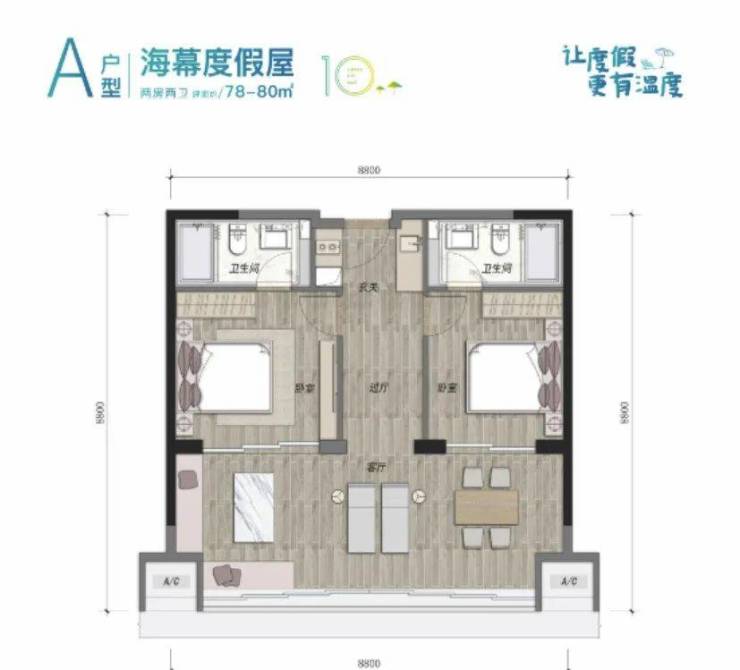 2. 约8.8米开间,尽享宽屏视野;