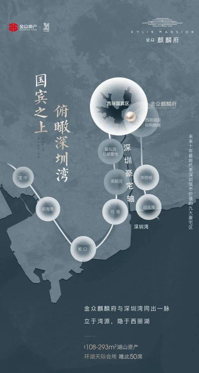 金众麒麟府,择址国宾馆麒麟山庄旁,于西丽湖山大境之上,私享国宾级尊崇礼遇。麒麟山庄,深圳第一国宾馆,占据深圳市中芯景观环境最好的西丽湖片区,深圳最高规格的接待地,深圳市委、市政府接待贵宾最高规格首选之地。