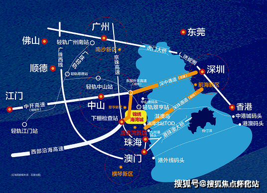 锦绣海湾城位于翠亨新区南朗片区,临珠海望前海,坐享深中通道排头,引领中山城市东进。项目500米即珠海唐家高新区,激活深中珠黄金生活圈同城效应。出门即珠海高速口,连接中珠双城大动脉。
