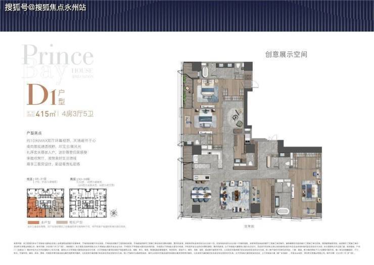 415㎡4房3厅5卫:总价3700-5000万 单价8.9-11万分布在8-31层有3个朝向,东南,西南看海,东北看大小南山+部分海