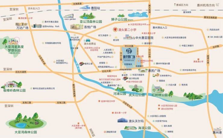 新华联广场:地处大亚湾行政、生态、商务三大中心区域的几何C位,周边聚集了政/商/文/医等众多醇熟配套。