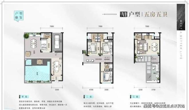 1、别墅立面也是以横向伸展的白色线条为主,也是体现一种舒展轻盈之态