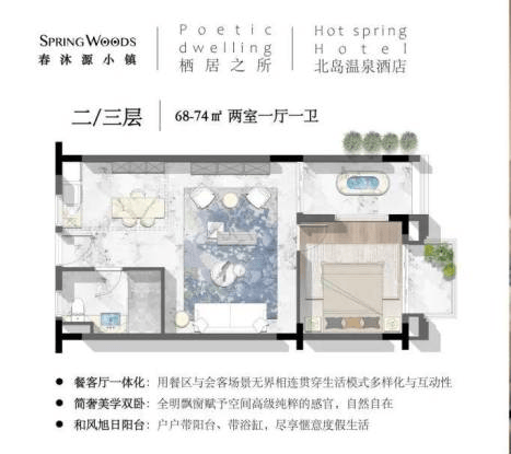 【产品面积】74㎡平层,1+1(一室一厅)