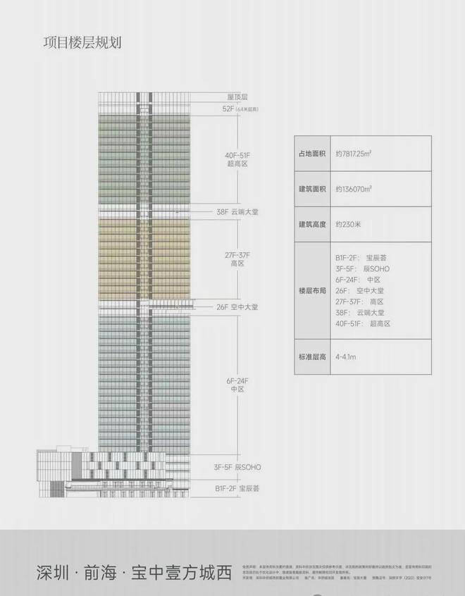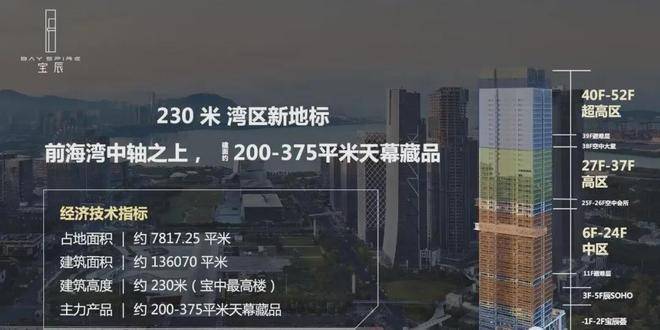 高度与规模:总高约230米,总建筑面积13.6万平方米,共52层,是宝安中心区最高建筑。