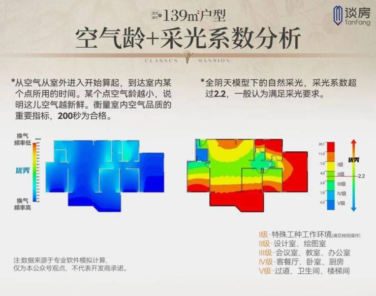 采光系数超过2.2的面积占比约95%,空气龄几乎为深色深蓝色,换气频率高,将南向资源充分用尽。
