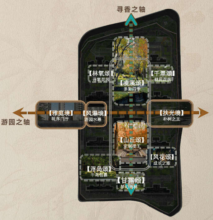 小区“一脉十园”整体动线规划,以“寻香之轴”和“游园之轴”两大中轴纵横贯穿其中,上游打造“三境七颂”东方精奢园林,下游定制约600平方米琉璃光苑,配合下沉式立体园林约10米落差的飞流瀑川,让住户拥有一步一景的东方园林居住环境。