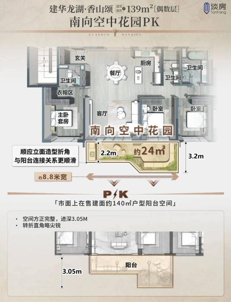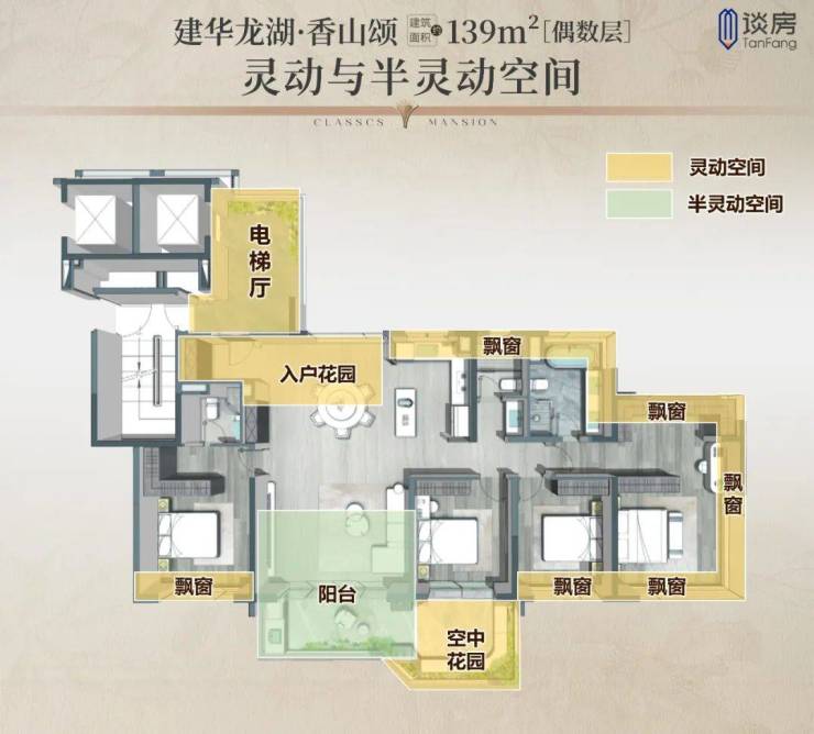 以下为香山颂约139㎡的高能应用,实用率至高130%(不含电梯厅)。