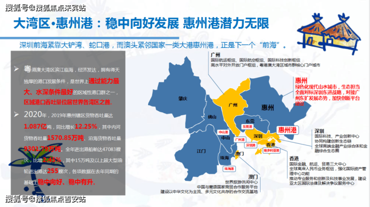惠州港:惠州港是天然深水港,一期为货运,二期为客运,一期已运营,目前的吞吐量是盐田的2.5倍,二期客运即将投入使用,可以坐船直达香港维多利亚港,全程仅47海里,港口的发展必然带动周边交通和产业的升级,项目毗邻港口,升值潜力不可估量。