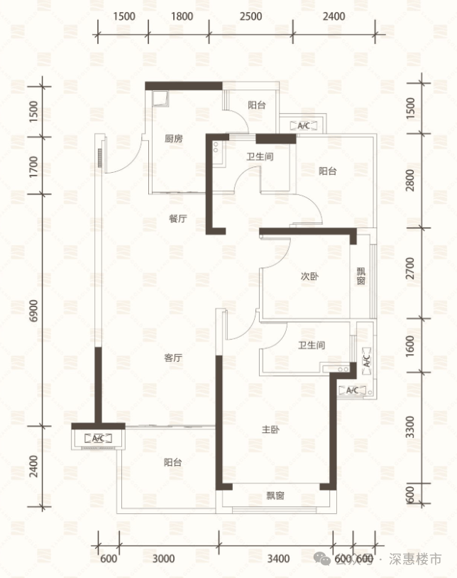 A户型约95㎡3房2厅2卫