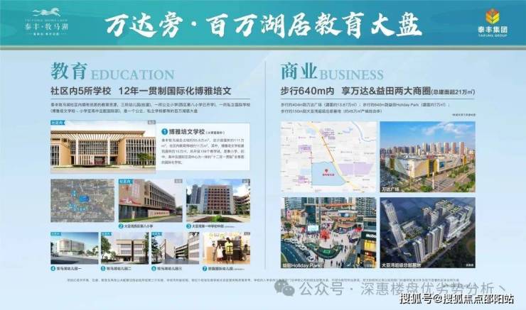 同时项目周边梯度化布局,近距离(640米)有益田Holiday Park补充精品消费;中距离(1.6公里)有吾悦广场提供亲子娱乐等服务,简单理解泰丰牧马湖属于核心商圈加社区商业双层配置,基本十分钟左右就可以解决百分之九十的生活需求,这个在大亚湾来说很不容易