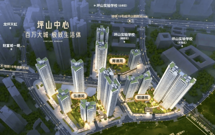 财富城二期位于坪山区坪山中心区金丰路旁,项目所处位置属于坪山最繁华地段,前看坪山半月环公园,侧靠实验学校小学、初中、背靠成熟的住宅区,可享受区级的行政配套六馆等、周边万科、招商、中心公馆、财1等楼盘。