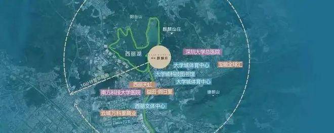 北面举步一线西丽湖,观浩淼湖水一碧如镜;南观大学城人文景观,一览无余;