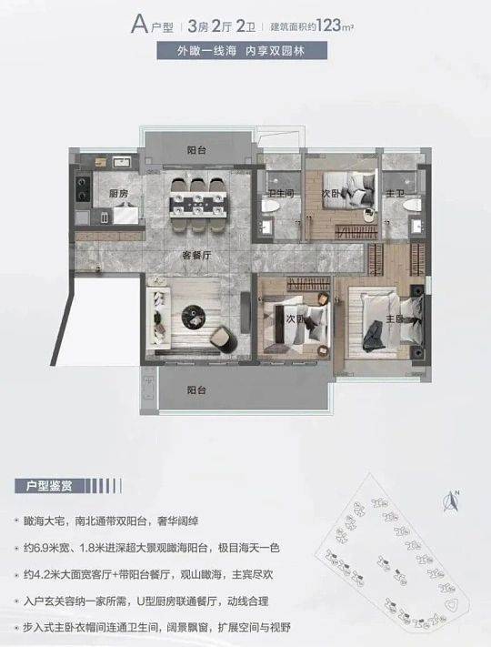 123㎡四房两厅两卫(楼王户型,一线海景视野,总价 185-210 万)