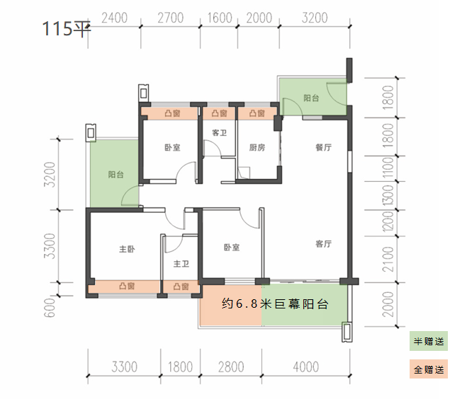 115平4房2厅2卫南北通透的户型,