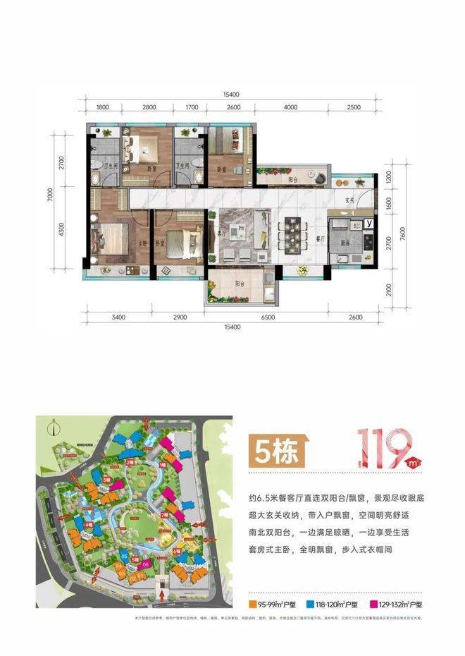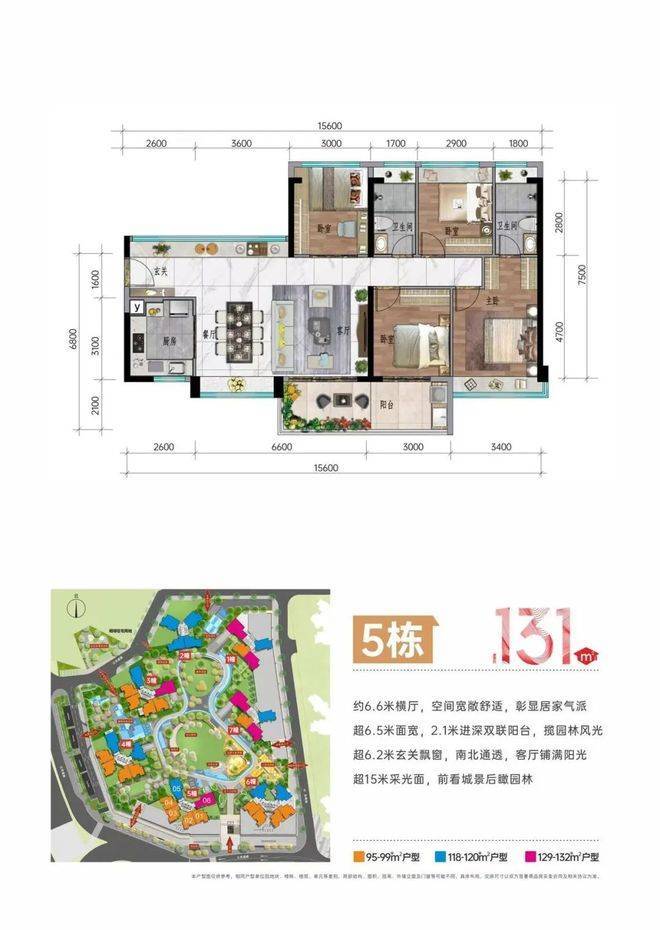 目前主要在售5栋和6栋,在售户型主要有两个,98平3房2厅2卫以及118平4房两厅两卫的户型,130平横厅3房两厅两卫,