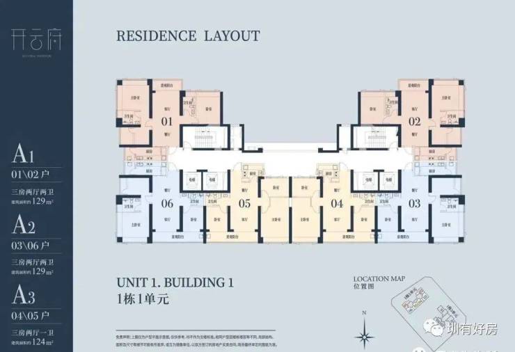 🔹1栋一单元A1、A2户型:面积约为129㎡