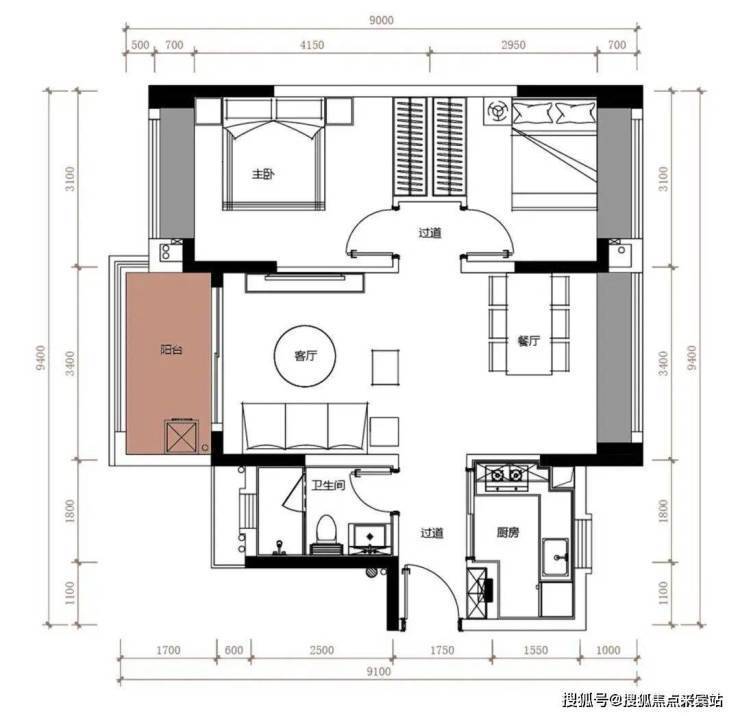 图三:94m² 三房两厅两卫