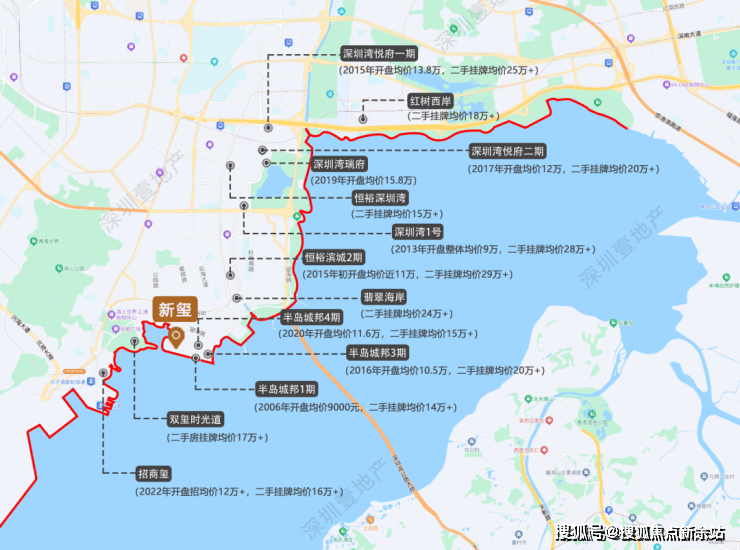 众所周知,深圳的财富主场,既在西边,更在海边。深圳叫得出名字的豪宅、最贵的房子,几乎都集中在深圳湾这条沿线上。