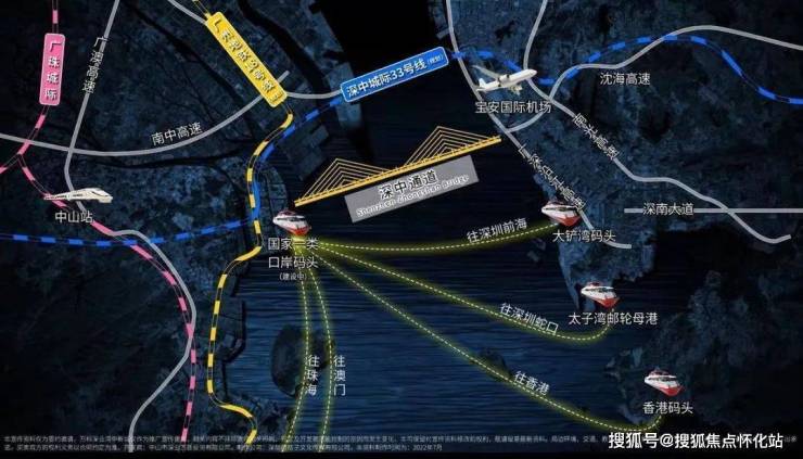 深中通道(建设中):快速直达前海和宝安机场,预计2023年建成,2024年通车;