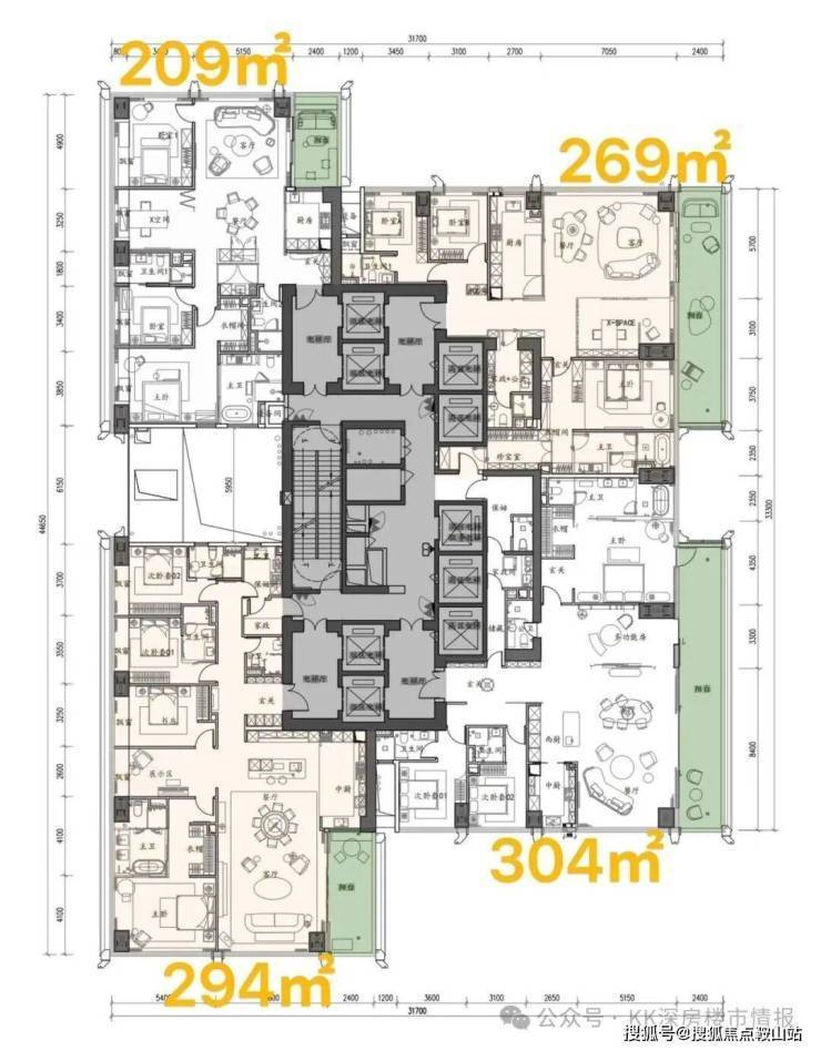 ③超高区58F起(200米以上)是约500-700㎡顶级大平层;