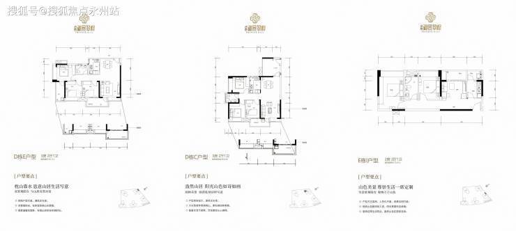 户型设计:主打大平层(182-260㎡)及复式(281-344㎡),层高3.1-3.5米,南北通透,赠送面积多(最高送200㎡)