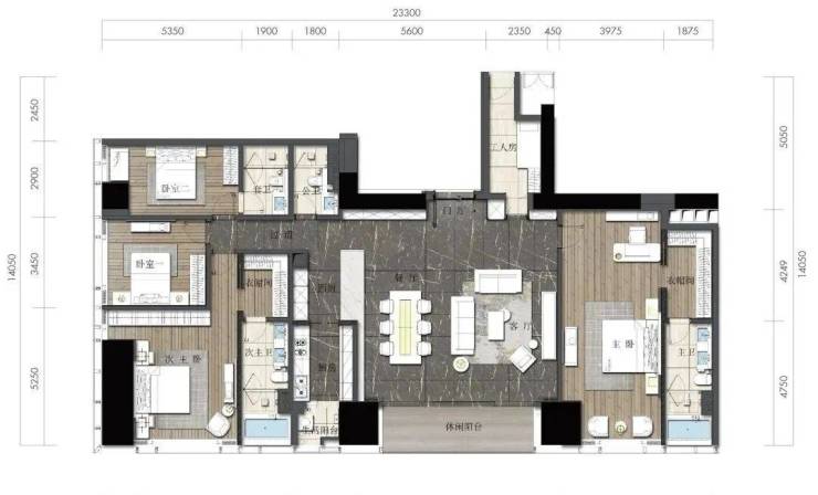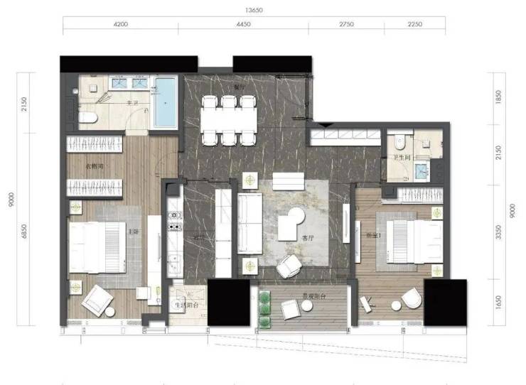 约164㎡2房2厅2卫(独立入户玄关,动静分离,约33㎡豪华主卧,承载品质生活)