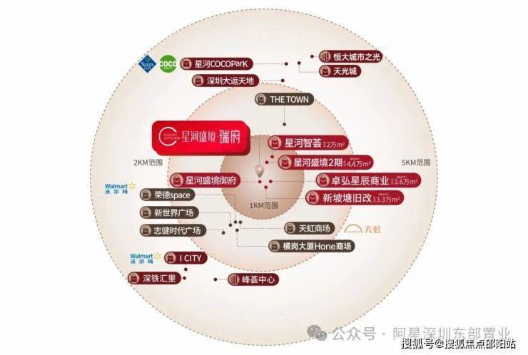 🏛约5公里范围:尽揽百万㎡商圈,星河COCOPark(龙岗山姆会员店)、大运天地、恒大城市之光、天光城等知名商业体环伺,畅享都市繁华便利。