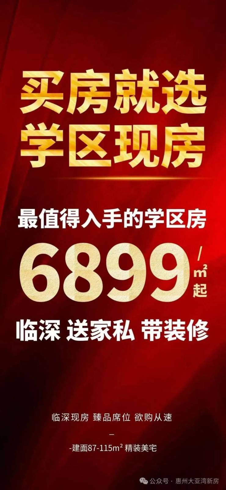 聚源上府位于大亚湾西区,临近深圳2.6公里,沙田地铁站5.5公里,开发商惠州市摩尔城实业有限公司,碧桂园物业管理,整个项目1栋2个单元,243户组成,项目对面一所9年制的大亚湾第三学校(已开学), 聚源上府在售面积 87-115平米,户型使用率高,带装修交付,均价6880-7550/带装修,零门槛上车,