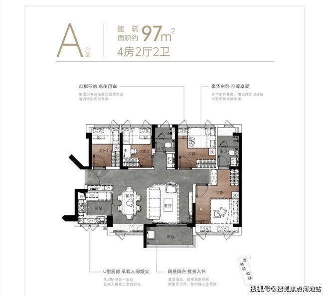 97㎡的4房2厅2卫,折后总价约270万起,单价约2.78万/㎡。