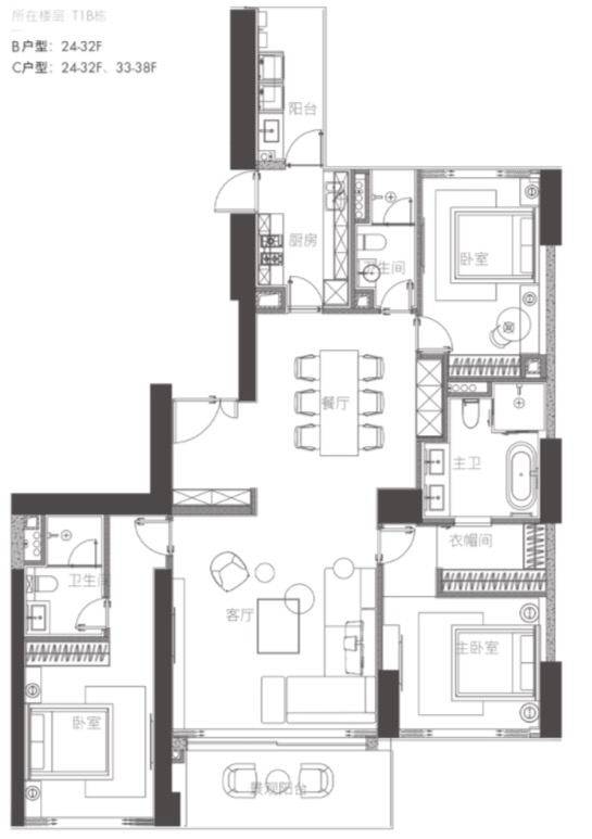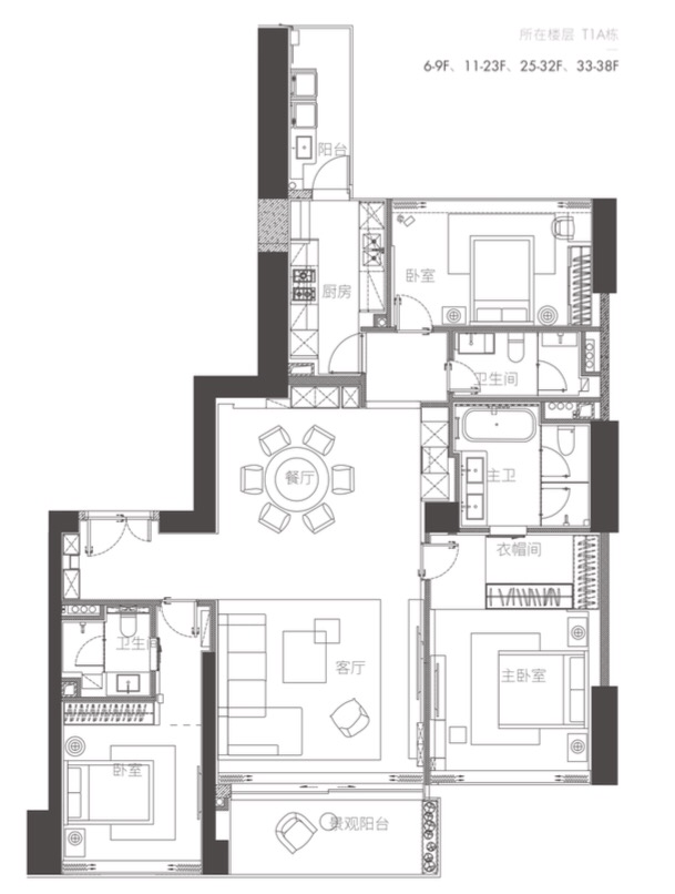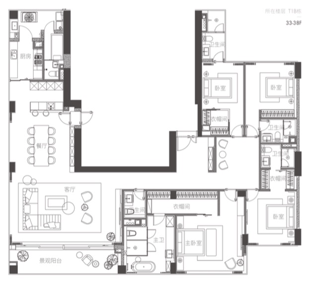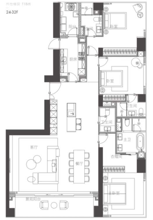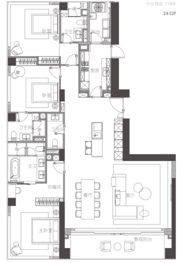 3. 主卧L形全景落地窗,270°最佳观海位。南向超大三厅一体,奢华大气。