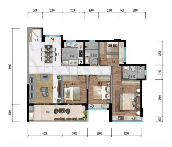 『格局方正 双联景观阳台』:131户型 四房两厅两卫