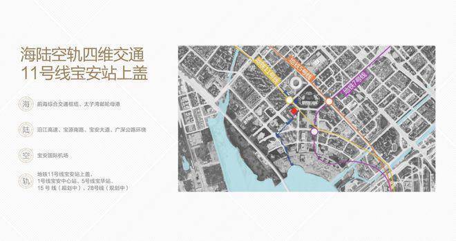 除此之外,项目片区还将依托宝安国际机场(扩建中)、深中通道(建设中)、机场东综合交通枢纽(规划中)等重大设施,充分发挥前海湾战略桥头堡和国际门户作用。