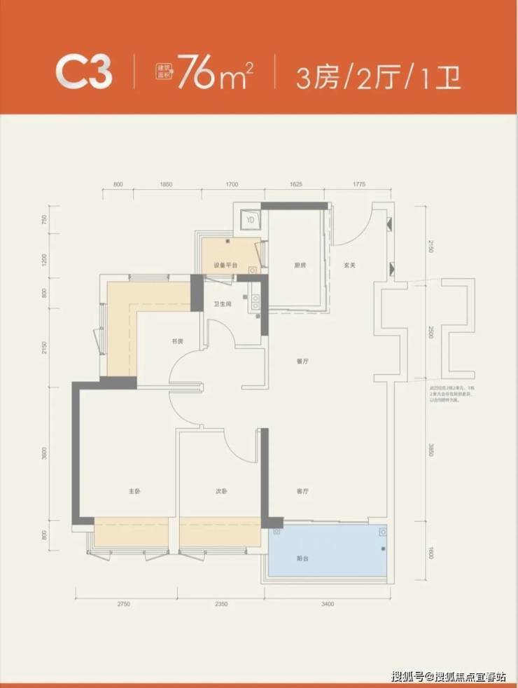 建面约76㎡3房1卫