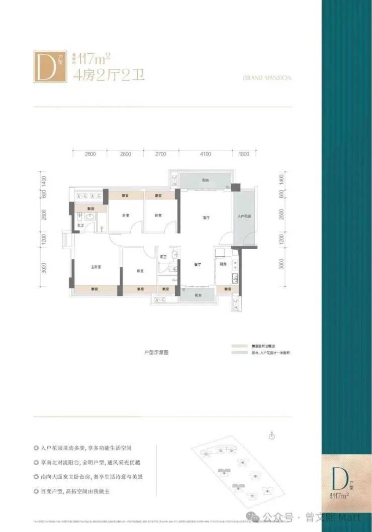 匠心户型,满足全生命周期:项目精心规划88㎡精致三房、100-117㎡舒适三至四房、176-200㎡阔绰大平层。方正通透的格局、灵动可变的空间、多阳台设计,无论是二人世界、三口之家,还是三代同堂,都能找到心之所向。