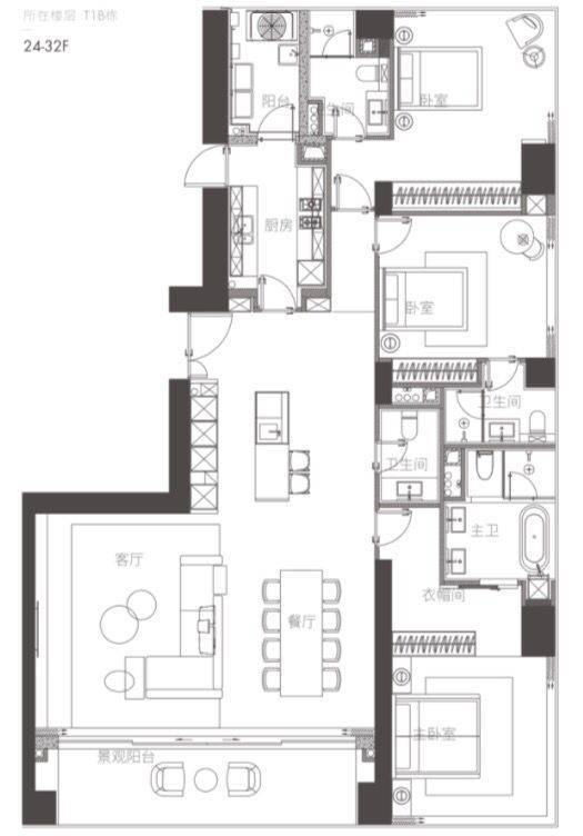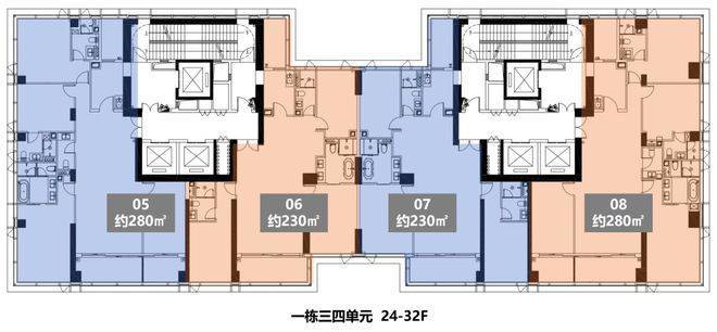 08户型 东端户 约280㎡ 四房两厅四卫(05、08镜像对称)