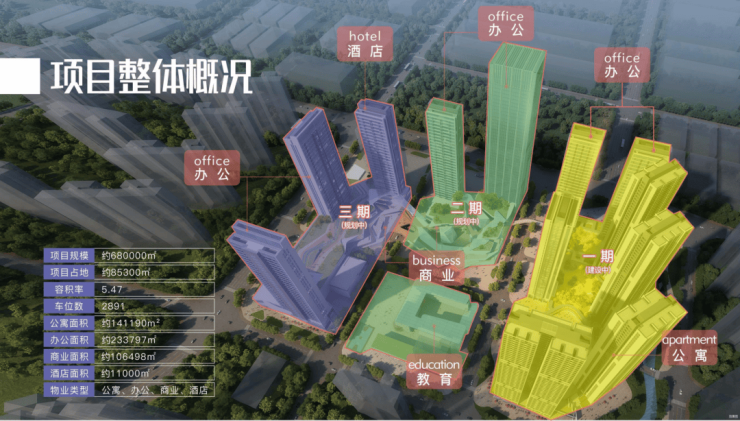 3、约68万平综合体,自带约10万平商业+约8万平园林。