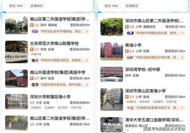 优质学校:北师大附小、南山外国语学府学校、南二外学府中心、南油小学、深圳大学附属后海学校、北师大附中、深圳湾学校等