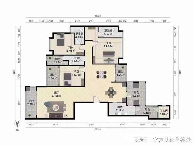 在售约370㎡大平层,纯板楼,两梯两户,户型南北通透,超100%使用率