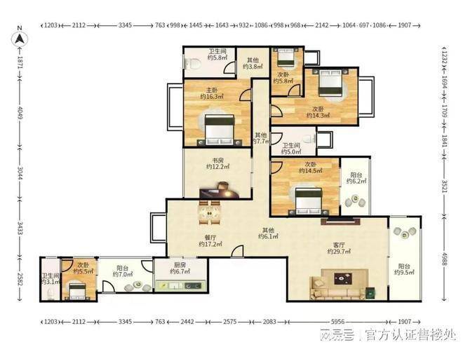 稀缺纯板楼设计,绝版大平层,2梯2户,南北通透5+1房4卫3套房!