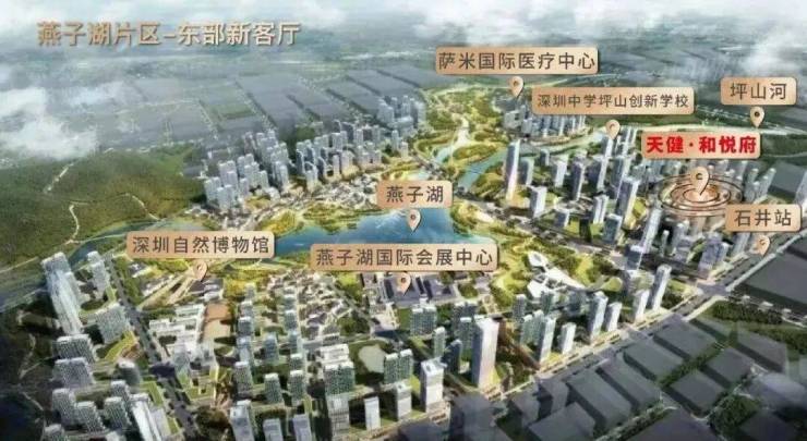 约1.2KM到燕子湖国际会展中心,约6KM内到坪山体育中心,紧邻约10万㎡的六馆一城、深圳自然博物馆等环绕,媲美福田市民中心。