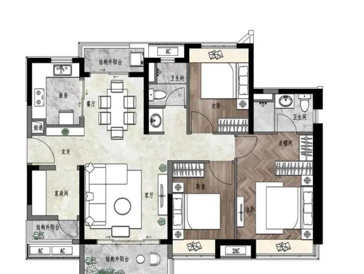 建面约117㎡ 三房两厅两卫