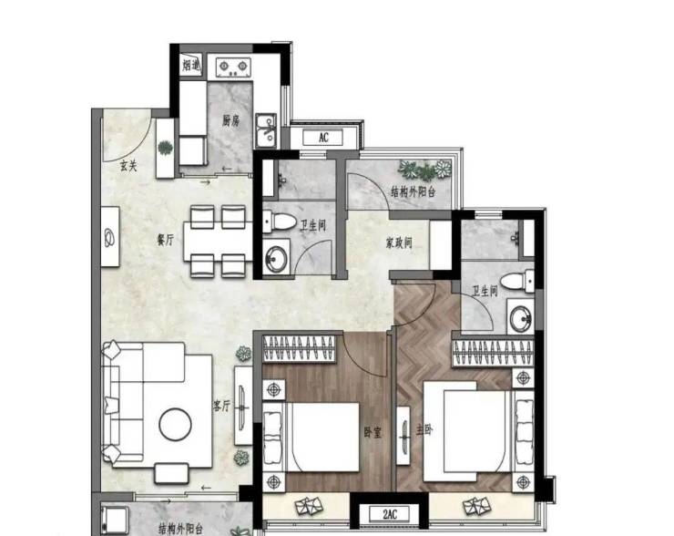建面约100㎡ 三房两厅两卫