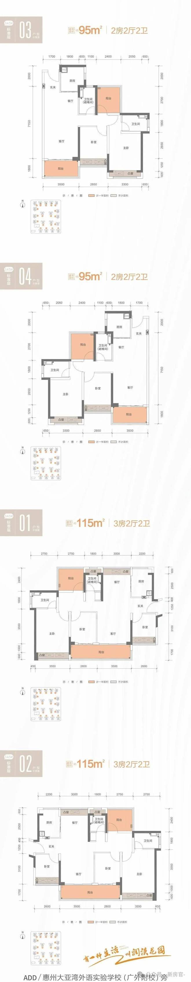 目前主推户型面积在80 - 115㎡,涵盖二至三房: