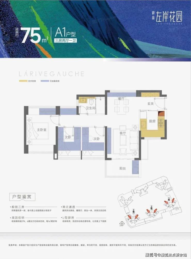 ·极致三房 同等面积多一房,奋斗路上也能照顾父母孩子·南北通透 通风采光俱佳,餐客厅、阳台一体,共享交流空间·高效收纳 收纳面积超21%,6重全方位收纳空间,每1㎡都好用·U型厨房 收纳有序,洗切炒动线合理布局,让你爱上下厨房