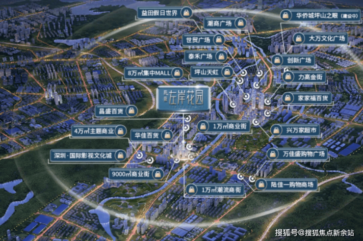 蔚蓝左岸花园首秀坪山,项目踞城央全南向水岸美宅,领秀坪山,涵盖约1万㎡水岸商业街、约2.5万㎡高品质全时全龄双园林,