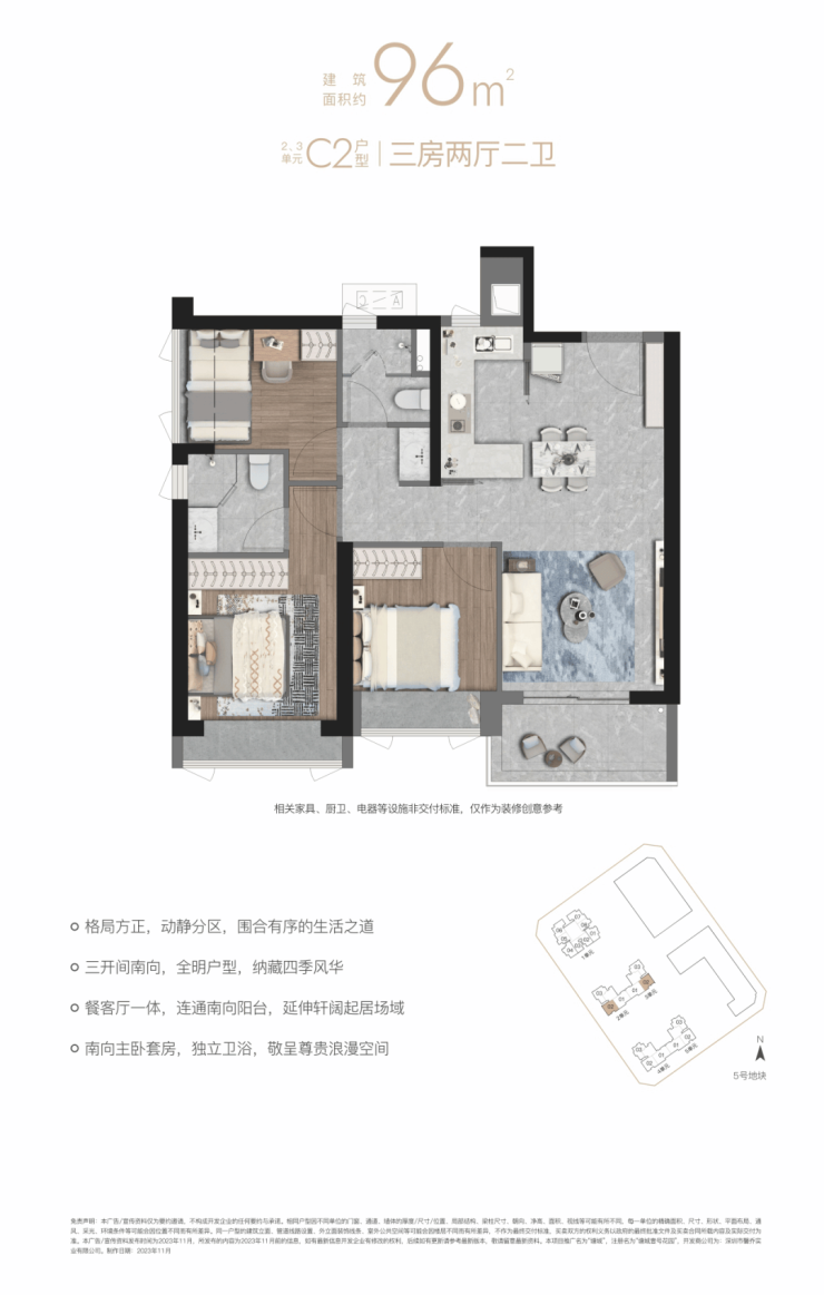【C2户型96㎡三房两厅两卫】