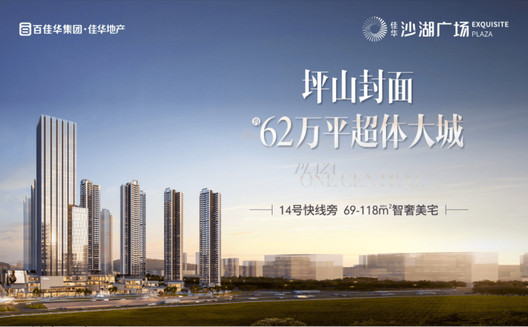 佳华沙湖广场汇聚精品智慧住宅、无界旗舰商业、商务公寓、办公等多元业态于一体,是目前坪山唯一在建综合体大城,满足半城繁华半城自然的生活全配套需求。