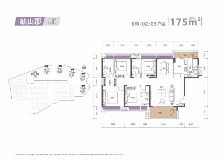 户型一:联排,建筑面积约175平的联排别墅,总赠送面积高达210平-270平,总面积高达380-450平,赠送率高达120-160%,折后总价约380万起,花园面积约70-100平。