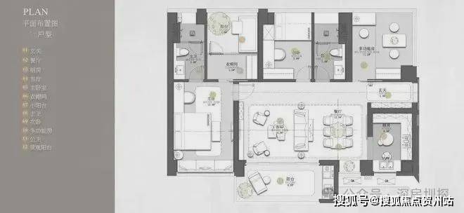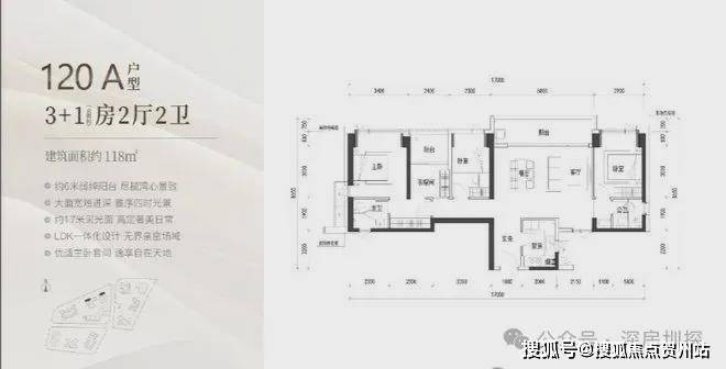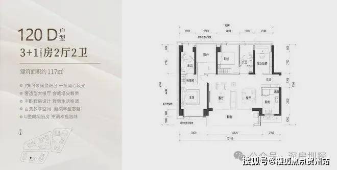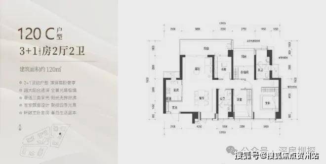 建面约120㎡的3+1房2厅2卫,