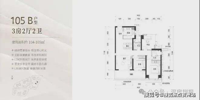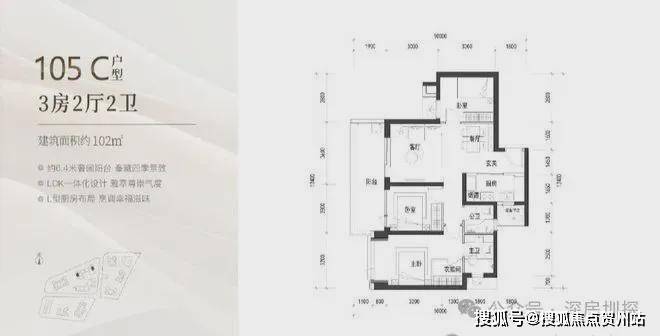 建面约105㎡的3房2厅2卫